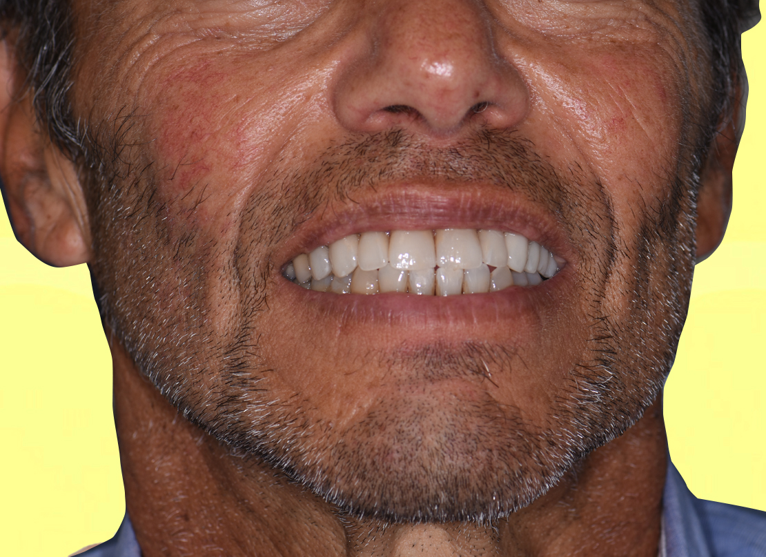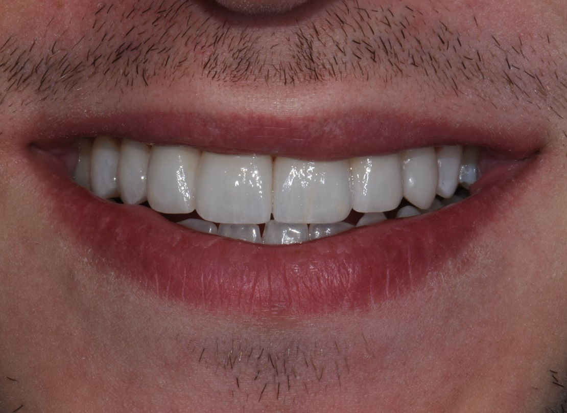 Federico desiderava migliorare e ricostruire la brillantezza del suo vecchio sorriso. A causa di una vecchia ricostruzione in composito sugli incisivi centrali effettuata in maniera superficiale, aveva perso il piacere di sorridere. Lo spessore delle ricostruzioni di Federico, infatti, risultava essere decisamente eccessivo, provocando una distanza innaturale tra gli incisivi superiori e quelli inferiori.